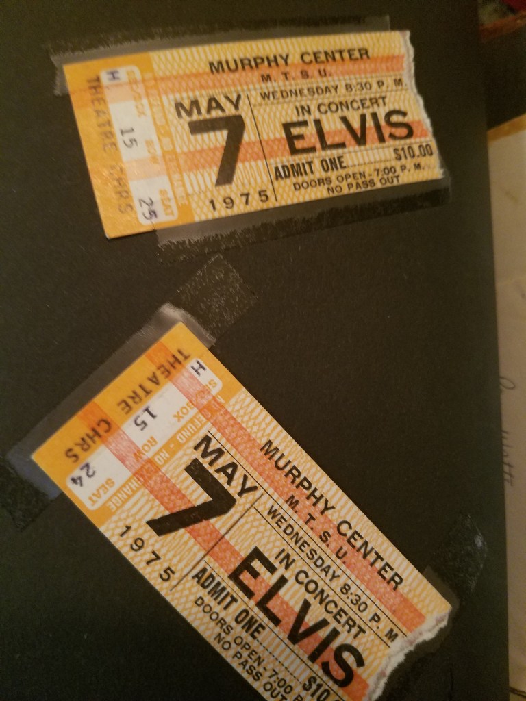 Yes, I was there. No, I wasn’t this close to Elvis. A friend sent me the picture. But those are my ticket stubs.