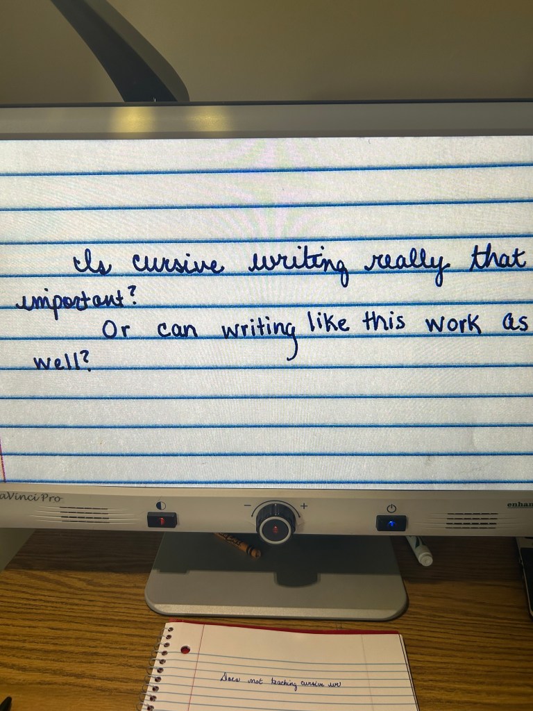 That’s the same with cursive writing. It had its use at one time, but it’s no longer needed. When living in a world where you can speak the words and a computer types them for you and in a world in which forms are often e-mailed for e-signatures, it’s just not necessary.