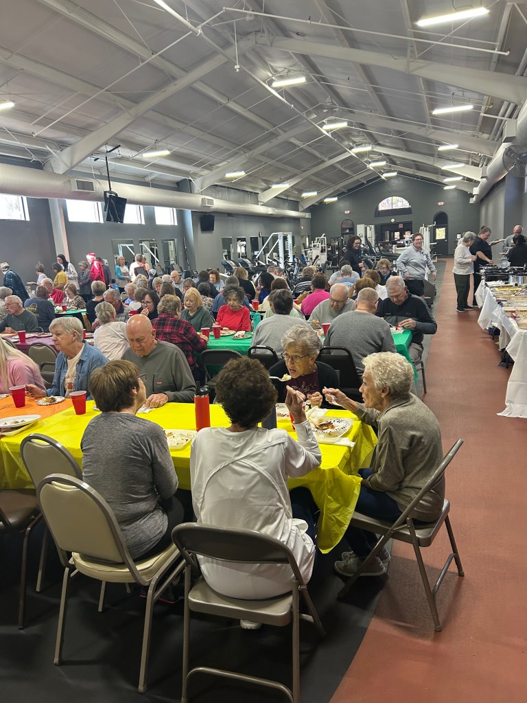 This past Monday, members of the WC gathered for a Friendsgiving. We signed up in advance for what we’d bring (I made homemade bread, in case you’re curious), and the center closed for two hours to allow enough time to set up, eat, visit, and clean up. More than 100 people were there to enjoy the event.
