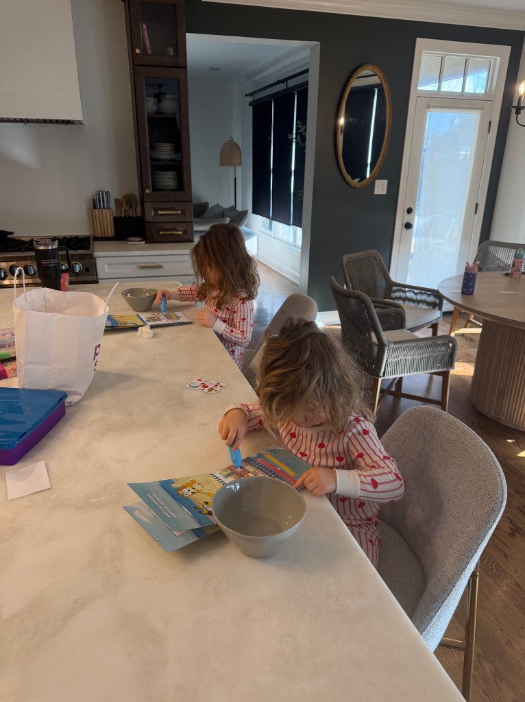 A lazy, rainy morning after-breakfast, before getting dressed, before hair being brushed. The focus? Aqua Art. Paint perfect pictures using nothing more than water and a brush or finger. Allow to dry. The ink disappears, and you can do it all over again. Blooey and Bingo are perfect every time.